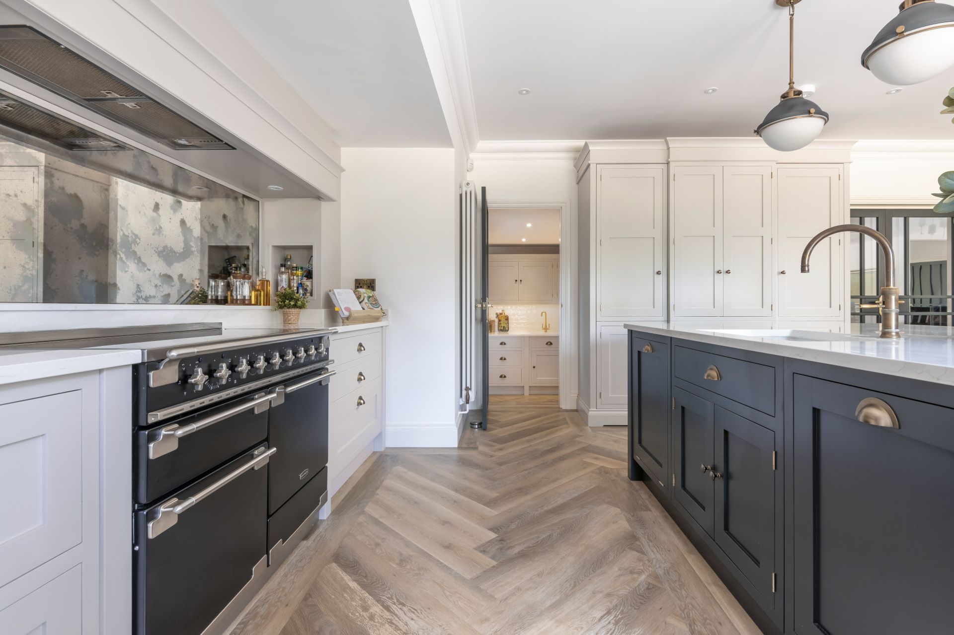 - Hand Painted Kitchen – Light Grey with Dark Ink Blue Island