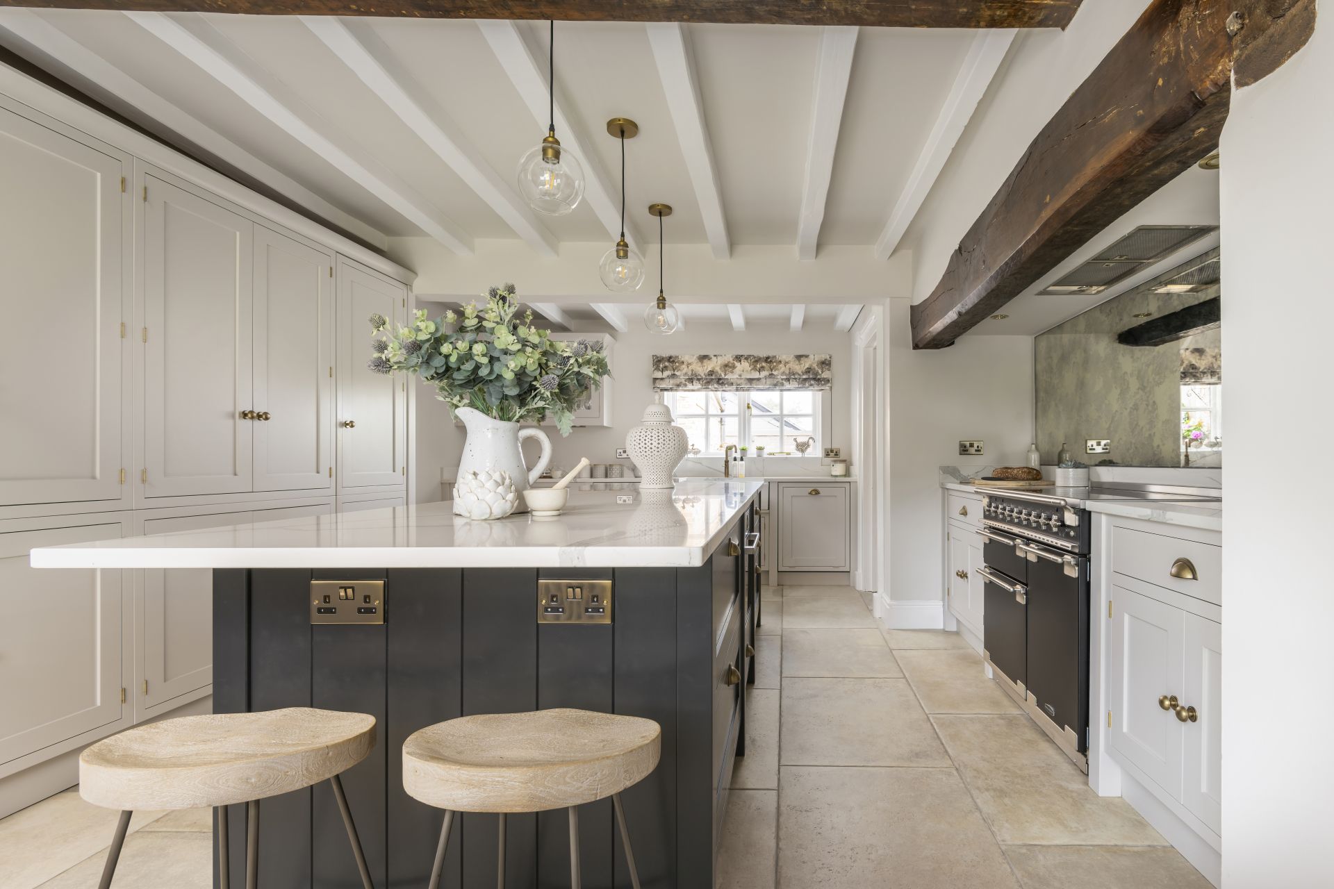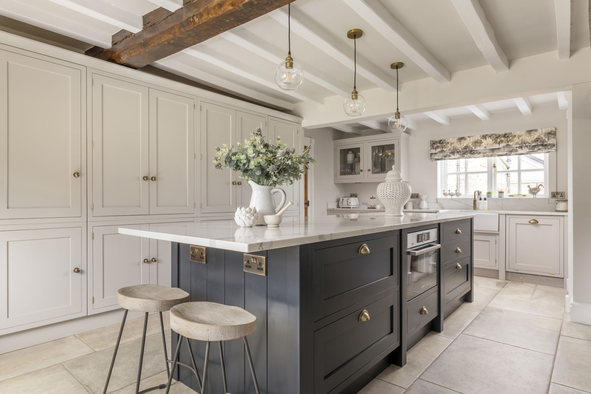 - Hand Painted Kitchen – Light Grey with Dark Ink Blue Island