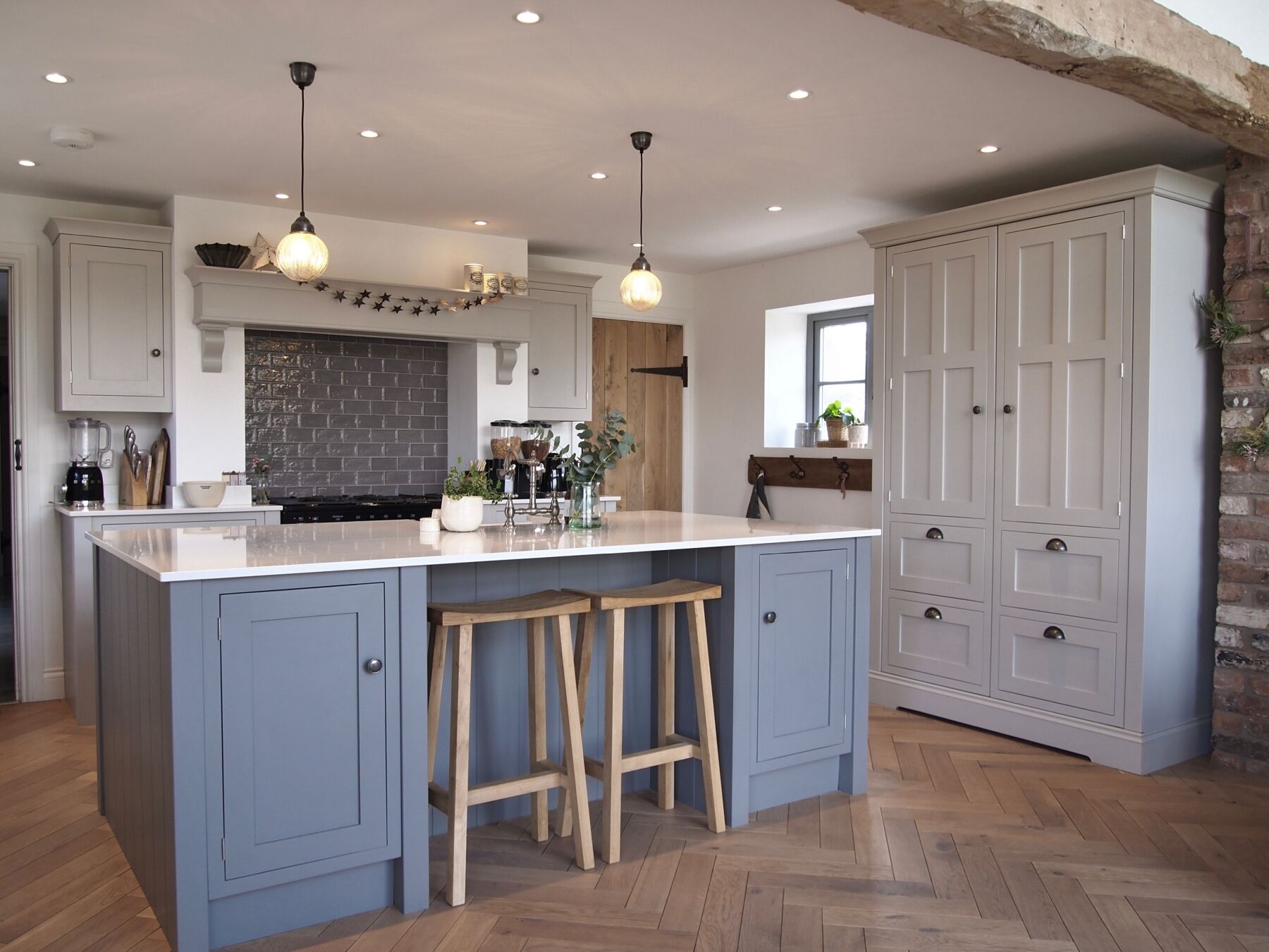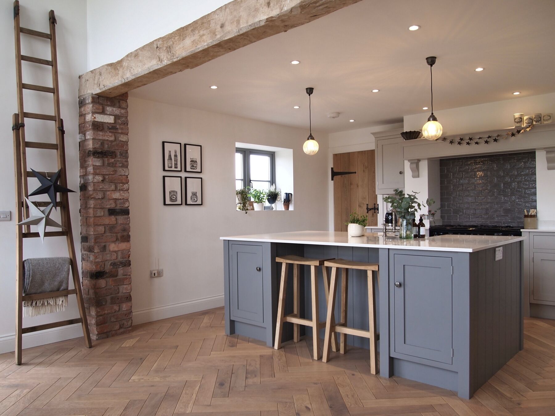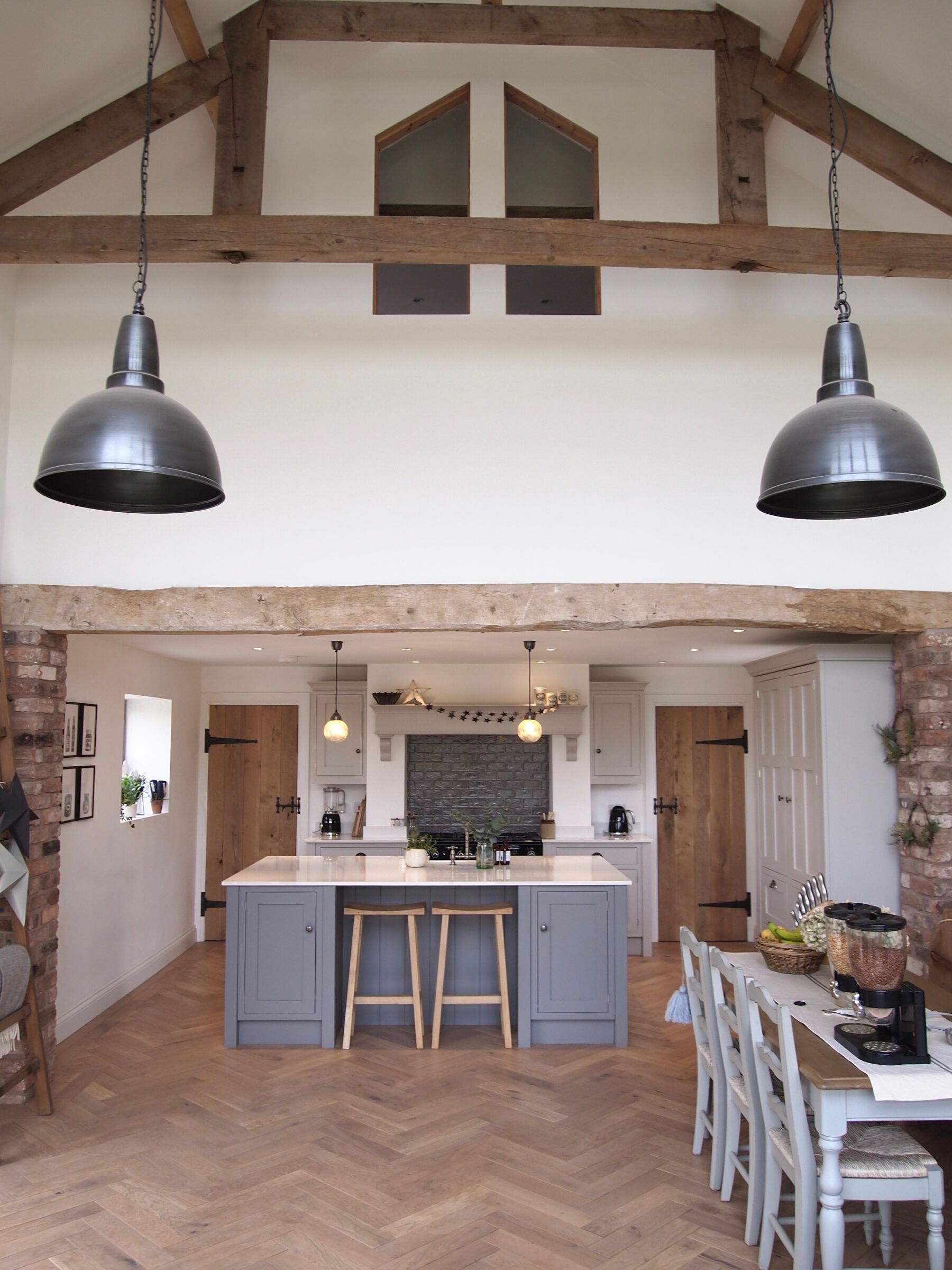 This open plan space has a wealth of character with the exposed brick walls and striking beams. The handcrafted shaker kitchen also features meticulously finished, hand-painted grey tones which echo the quality and craftsmanship that has gone into every inch of the design and build.