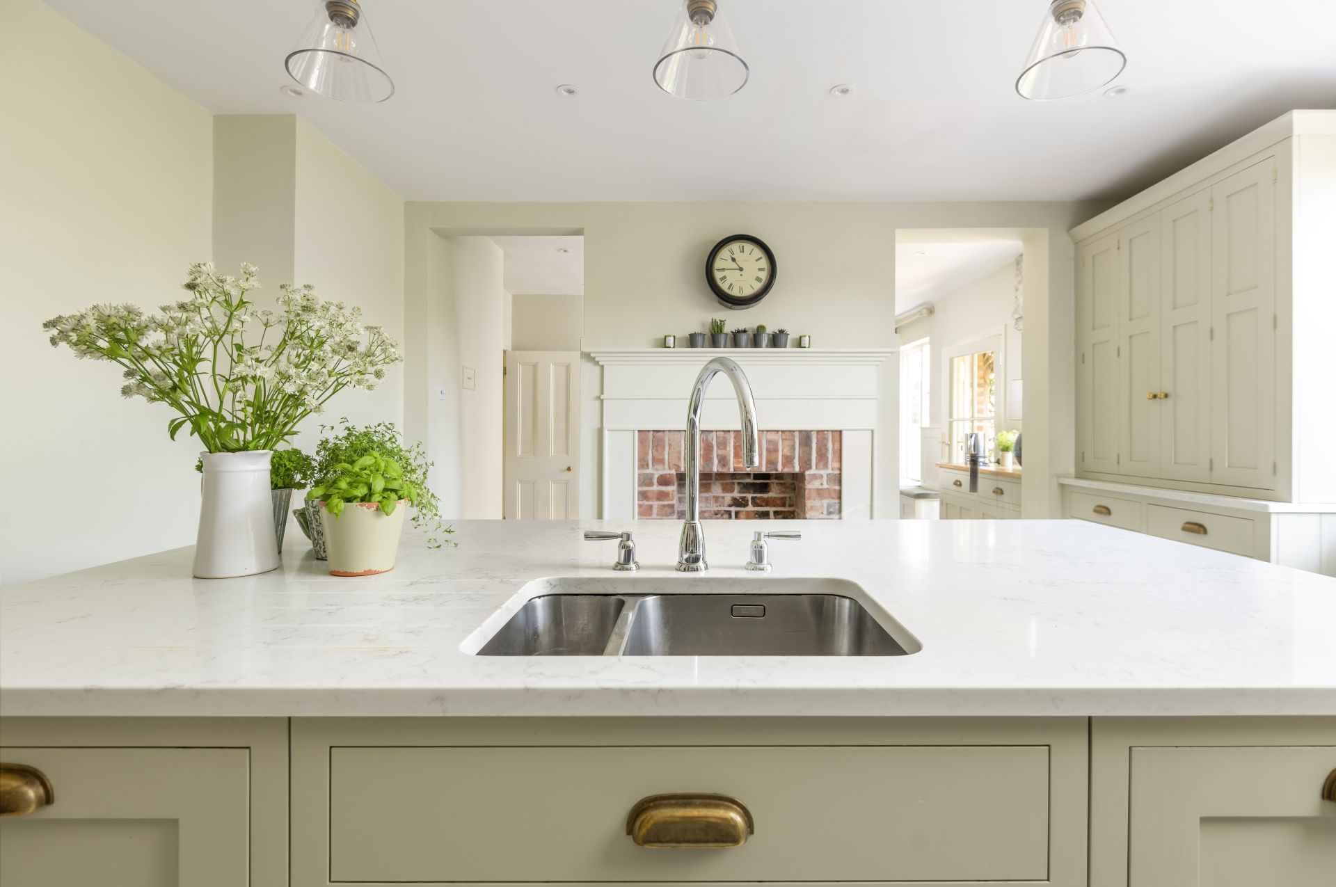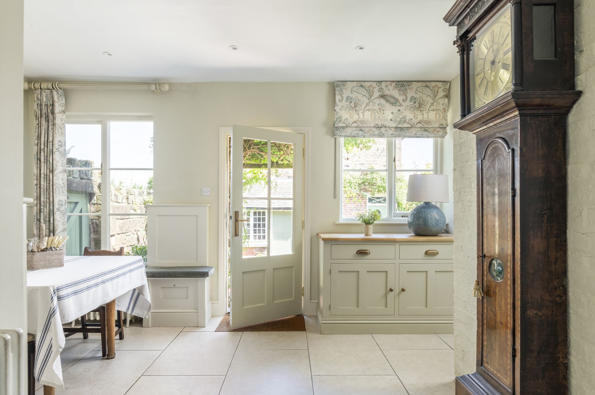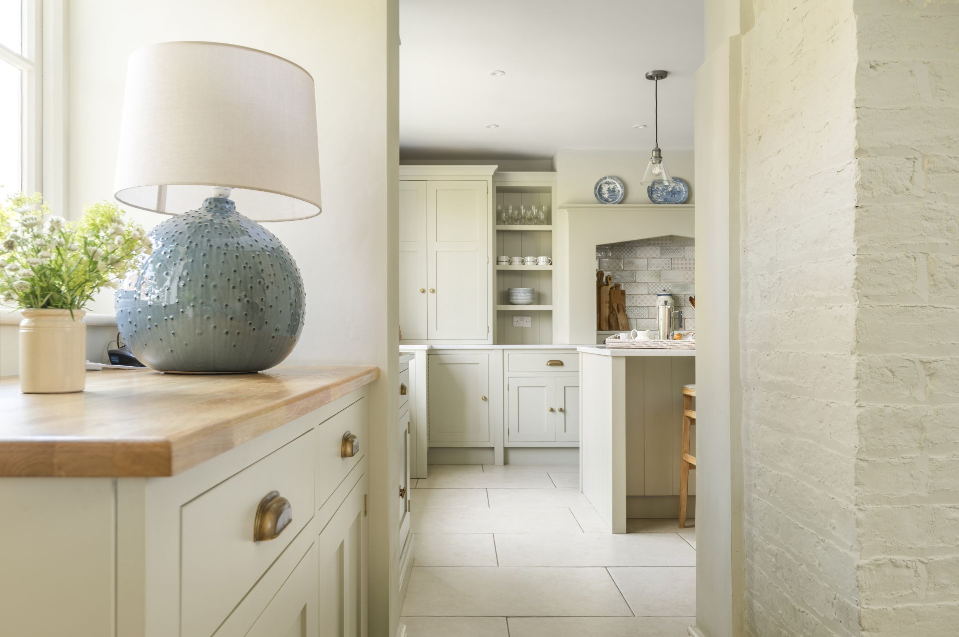 The overall design blends seamlessly with the period features and antique furnishings of the home. Despite its traditional aesthetic, the kitchen is perfectly suited to modern living, featuring hidden integrated appliances and a centrepiece island.