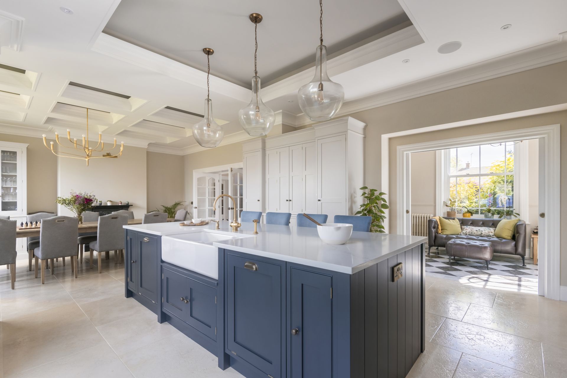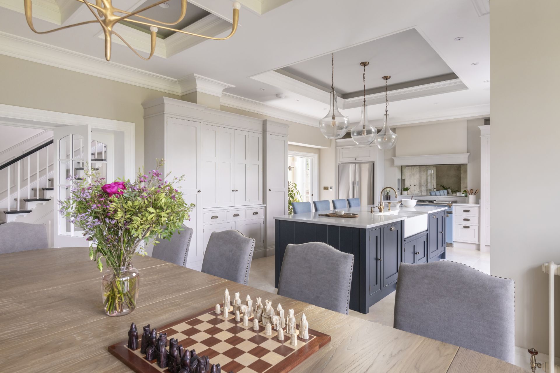 Located in Upton, Chester, this bespoke open-plan Shaker kitchen with cock-beaded frames revolves around the beautiful handmade kitchen island. It’s a focal point that makes a real impact.