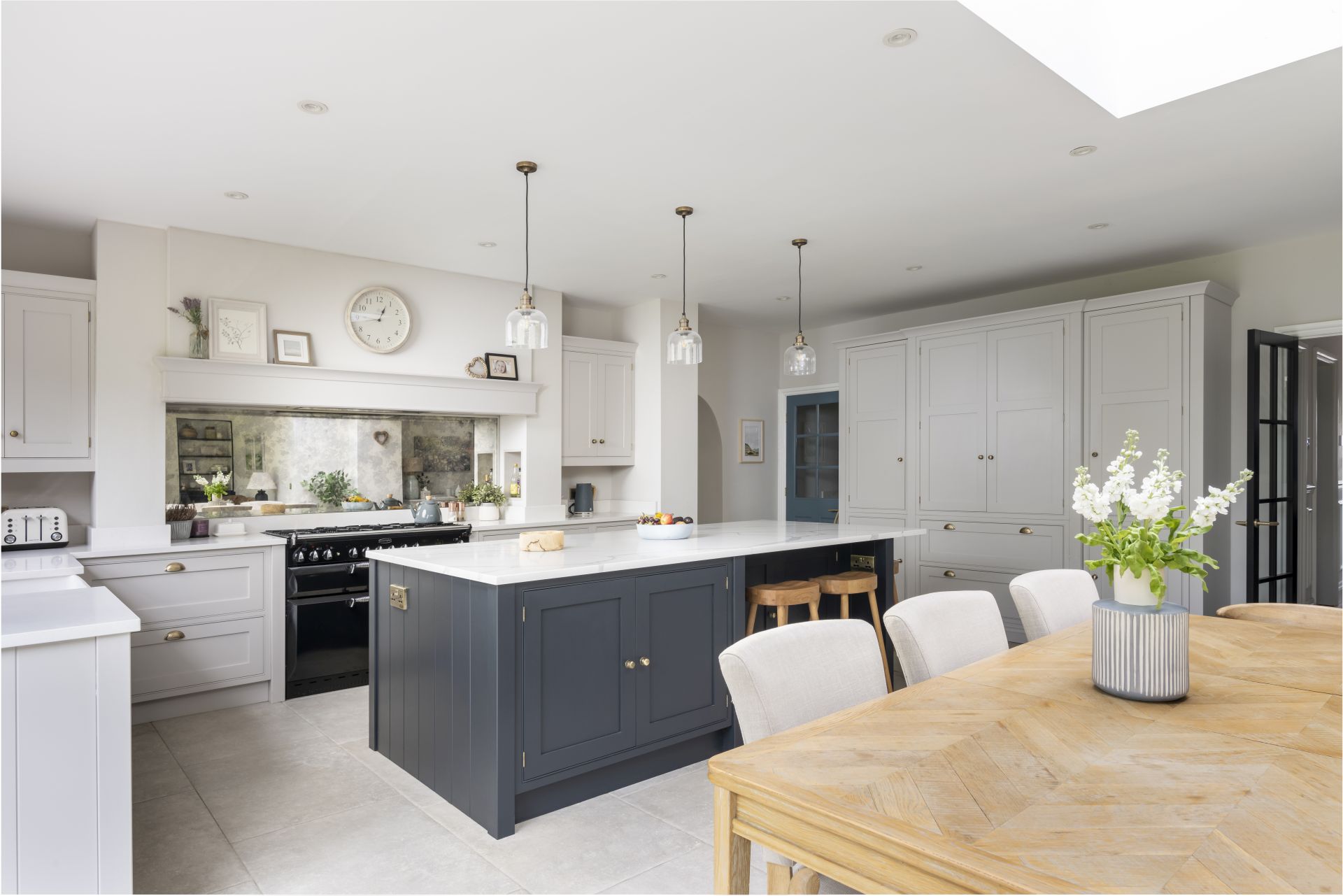 Integrated appliances and bespoke storage minimise any worktop clutter, bringing a fabulous contemporary flair to a traditional Shaker-style design.